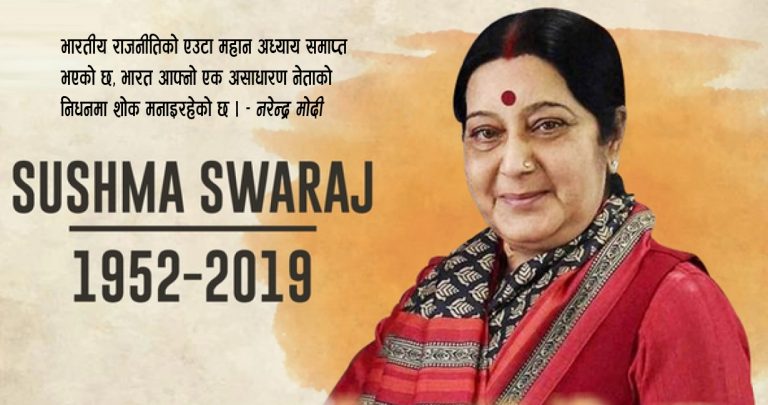 भारतकी पूर्व विदेशमन्त्री एवं सत्तारुढ भारतीय जनता पार्टीकी वरिष्ठ नेत्री सुषमा स्वराजको अगस्त ६ मा निधन भयो । स्वराजलाई भारतमा प्रभावशाली र सशक्त नेतृका रुपमा स्मरण गरिन्छ । सन् २०१६ मा मिर्गौला प्रत्यारोपण गरेकी स्वराजले स्वास्थ्य समस्याकै कारण गएको लोक सभा चुनावमा उम्मेदवारी दिनुभएको थिएन । सन् २०१४ को २६ मे देखि पाँच वर्ष भारतको विदेश मन्त्री हुनु भएको थियो ।