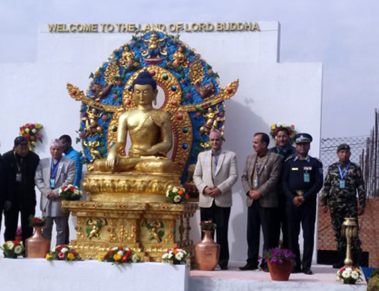 ‘वेलकम टू द ल्यान्ड अफ लर्ड बुद्ध’ लेखिएको बुद्धको प्रतिमा सजाइएको छ। बुद्धको प्रतिमा स्थापित भएसँगै अब विदेशी पर्यटकले जहाजबाट ओर्लने बित्तिकै बुद्धको देश नेपालमा आएको अनुभव गर्नेछन्।