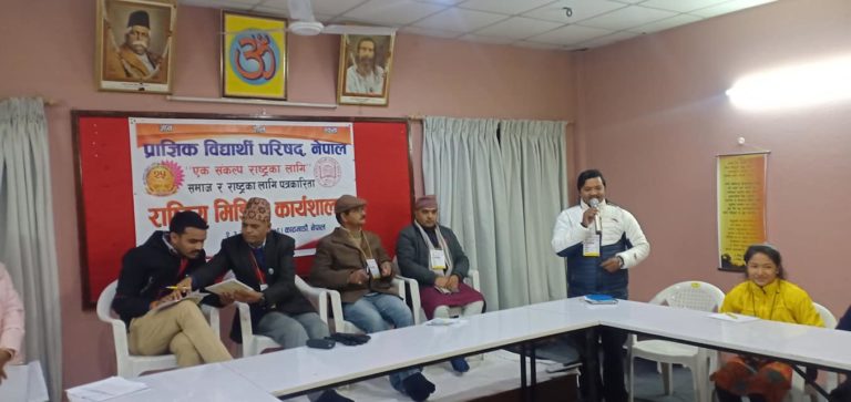 काठमाडौँ, २ माघ । प्राज्ञिक बिद्यार्थी परिषद्, नेपालको आयोजनामा राष्ट्रिय मिडिया कार्यशाला काठमान्डौमा प्रारम्भ भएको छ । समाज र राष्ट्रकालागि पत्रकारिता भन्ने संकल्पकासाथ तीन दिनसम्म सन्चालन हुने राष्ट्रिय मिडिया कार्यशालाको उद्गघाटन वरिष्ठ पत्रकार जीबराम भन्डारीले गरेका छन । कार्यशालामा वरिष्ठ स्तम्भकार श्रीकृष्ण अनिरुद्ध गाैतमले सन्चारकाे इतिहास र महत्वका बारेमा प्रशिक्षण दिएका थिए ।