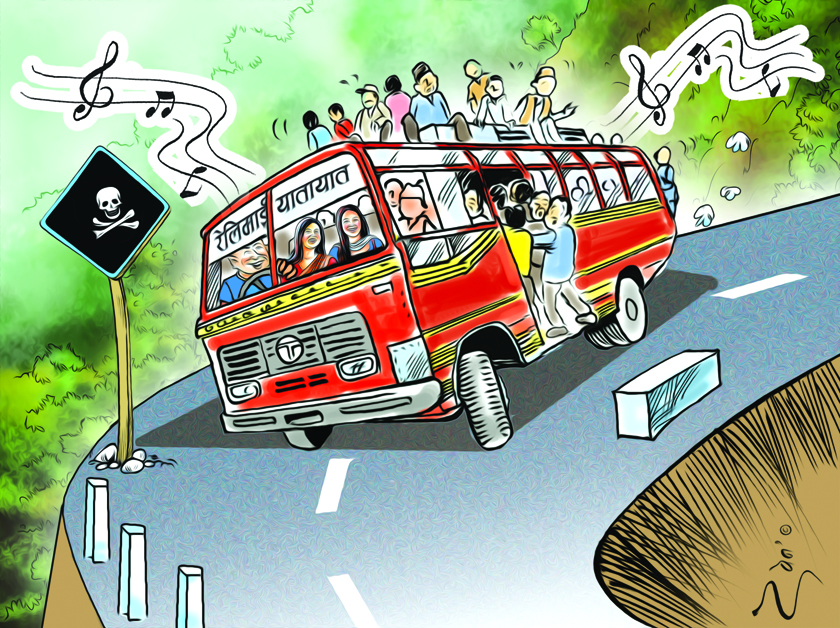 सार्वजनिक सवारी साधनमा गीत–संगीतलाई दुर्घटनाको कारक मान्दै यातायात व्यवस्था विभागले सार्वजनिक सूचनामार्फत क्याबिनमा गीत–संगीत बजाउने उपकरण नराख्न निर्देशन दिएको थियो।