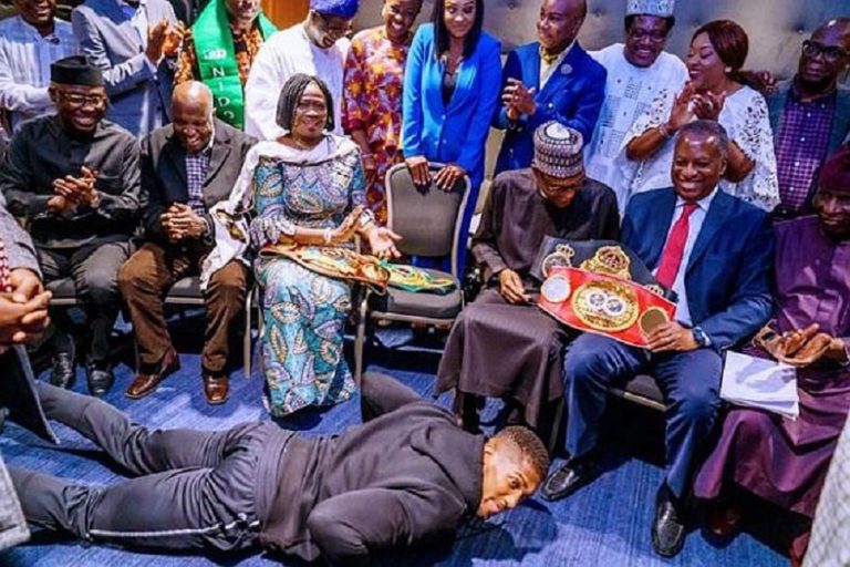 बेलायती बक्सर एन्थोनी जोसुआ नाइजेरियाका राष्ट्रपति मुहमदु बुहारीसामु लम्पसार परेका छन् । बेलायतमा रहेका बुहारीलाई भेट्ने क्रममा जोसुआ लम्पसार परेका थिए ।