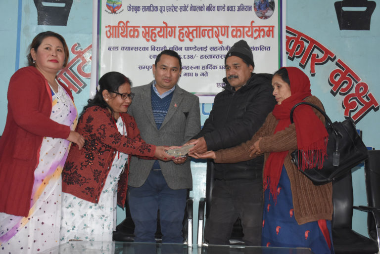 नेपाल पत्रकार महासंघका उपाध्यक्ष दिलिप कुमार थापाको प्रमुख आतित्थ्यतामा उक्त संस्थाले नविनका माता–पिता यशोदा पाण्डे र हरि बहादुर पाण्डेलाई उक्त रकम हस्तान्तरण गरेको हो।