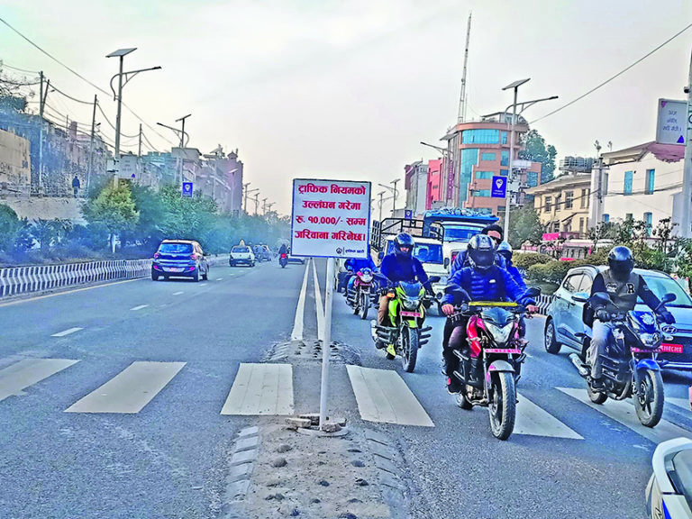 काठमाडौं, माघ । महानगरीय ट्राफिक प्रहरी महाशाखाले चर्को जरिवाना असुल्न सुरु गरेको छ। उपत्यकाका दुई सय स्थानमा दश हजार रुपैयाँ जरिवाना तिराउने लेखिएका बोर्ड टाँसिएपनि कारण भने खुलाइएको छैन। जसका कारण सवारी चालक नै ससंकीत भएका छन्। सवारी तथा यातायात ऐन २०४९ मा अर्कै नम्बर प्लेट राखी सवारी चलाउनेलाई ६ महीनासम्म कैद र पाँचदेखि १५ हजार रुपैयाँसम्म जरिवाना तिराउने व्यवस्था छ।