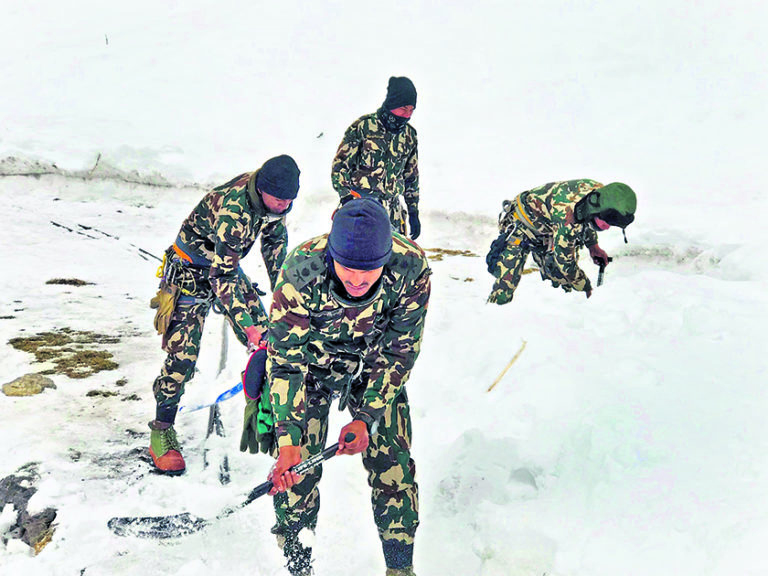 पदयात्री खोज्न हिउँ खोतल्दै सेना