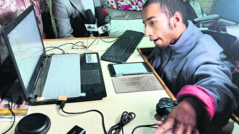 उनी प्रायः सेक्सपियरलाई पढ्छन्। डिक्सनरी पल्टाउँछन् र नाकले अंग्रेजी छन्द लेख्छन्। माथि उल्लेख गरिएका हरफहरू उनीद्वारा दुई वर्षपहिले लेखिएको र उनलाई मनपर्ने कविताबाट लिइएका हुन्। नाकले लेख्दा कठिन र अत्यधिक समय लाग्ने हुन्छ। तर शारीरिक दुर्बलताबाट मुक्त हुँदै बाँकी विश्वसँग जोडिने यो नै उनको एक मात्र माध्यम हो। २१ वर्षीय दर्शन केसी ‘शंकु’ बाल्यावस्थामै अर्थात् एक वर्षको हुँदा नै मस्तिष्क पक्षाघात (सेरेबल पल्सी) बाट पीडित भए। त्यसले गर्दा उनको शरीर स्थायी रूपमै हलचल गर्न नसक्ने अवस्थामा पुग्यो। बाल्यावस्थामै उनको खुसी खोसियो। यति मात्र होइन, सात वर्षको हुँदा उनले आमालाई समेत गुमाउनुप(यो। डिप्रेसन र उच्च रक्तचापकी बिरामी उनकी आमाले आत्महत्याको बाटो रोजेर दर्शनलाई थप बेसहारा बनाइन्। त्यसपछि उनका बाबु नीरबहादुर केसी नै उनका एक मात्र सहारा हुन्।