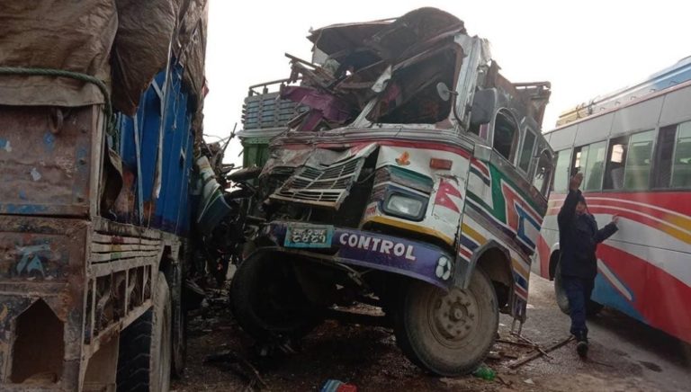 रुपन्देही, १४ माघ । ट्रक एकापसमा ठोक्किँदा रुपन्देहीको रोहिणी गाउँपालिका चार स्वीलिहवामा ३ जनाको मृत्यु भएको छ । ९ जना घाइते भएका छन् । भैरहवाबाट नवलपरासीतर्फ जाँदै गरेको ना २ ख ८४८१ नम्बरको ट्रक र भैरहवा आउँदै गरेको लु १ ख ६७४५ नम्बरको ट्रक मंगलबार बिहान करिब साढे ५ बजे एकापसमा ठोक्किएका हुन् ।