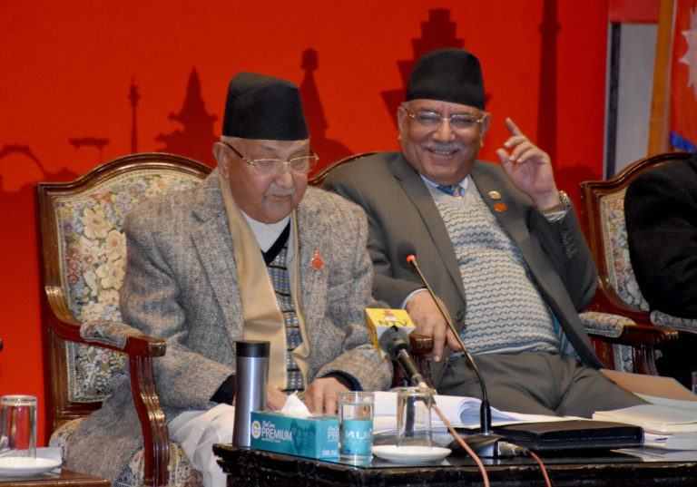काठमाडौं, १५ माघ । नेपाल कम्युनिस्ट पार्टीको जारी केन्द्रीय कमिटि बैठकमा अध्यक्षद्धय केपी शर्मा ओली र पुष्पकमल दाहाल प्रचण्डले संयुक्त रुपमा तयार गरेको राजनीतिक प्रतिवेदन प्रचण्डले प्रस्तुत गरेका छन् । प्रतिवेदनमा चीनको खुलेर प्रशंशा गरिएको छ भने भारत, अमेरिका र पश्चिमा देशहरुको आलोचना गरिएको छ ।