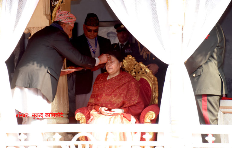 काठमाडौँ, १६ माघ : राष्ट्रपति विद्यादेवी भण्डारी श्रीपञ्चमीका अवसरमा आज हनुमानढोका दरबारस्थित नासलचोक जानु भई परम्परानुसार वसन्त श्रवण गरिन् ।