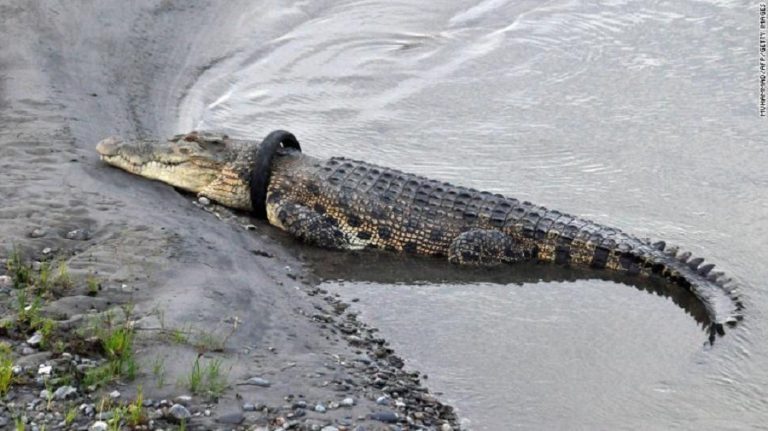 इन्डोनेसियोको एक प्रान्तमा सो घटाना भएको छ । उक्त टायर मोटरसाइकलको भएको जनाइएको छ । गोईको लम्बाई करिब १३ फिट रहेको छ । गोईको घाँटीमा सो टायर सन् २०१६ देखि अड्केको छ । सन् २०१८ मा इन्डोनेसियामा आएको सुनामी र भूकम्पबाट समेत गोई बचेको थियो तर, टायर भने यथावत घाँटीमा अहिलेसम्म अड्केको जनाइएको छ ।