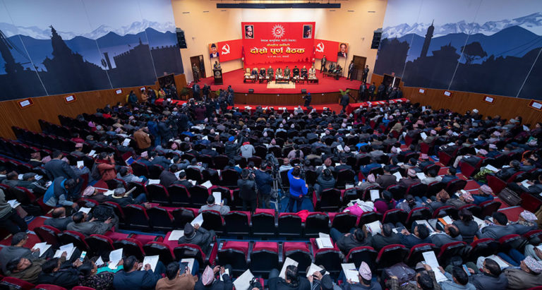 नेकपा केन्द्रिय कमिटी बैठक चलिरहँदा केन्द्रिय सदस्य राजेन्द्र राईले उठेर यसरी कडा स्वरमा प्रतिवबद गरेपछि १५ माघमा राष्ट्रिय सभा गृहमा हंगामा मच्चियो । बैठक उद्घाटन को ब्यानरमा माक्र्स, एंगेल्सको सट्टा दायाँबायाँ केपी शर्मा ओली र पुष्पकमल दाहाल प्रचण्डको फोटो टाँगिएको थियो । त्यो दृष्य देखेर राईले मात्र होइन ,अर्का केन्द्रिय सदस्य जगन्नाथ खतिवडाले पनि त्यस्तै शैलमिा प्रतिवाद गरे ।