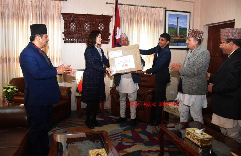 शुक्रबार परराष्ट्र मन्त्रालयमा परराष्ट्र मन्त्री प्रदीप ज्ञवाली र स्वास्थ्य तथा जनसंख्या मन्त्री भानुभक्त ढकालले नेपालका लागि चिनियाँ राजदूत हाउ यान्छीलाई सहयोगको रुपमा मास्क प्रदान गरेका हुन्। परराष्ट्र मन्त्रालयले सहयोग स्वरुप एक लाख मास्क प्रदान गरेको जनाएको छ।