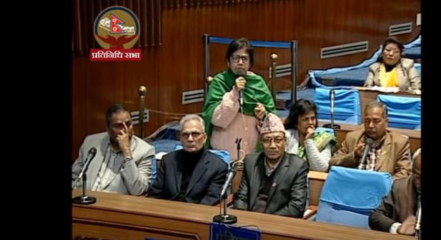 प्रतिनिधि सभाको विशेष समयमा बोल्दै उनले यस्तो बताएकी हुन् । उनले भनिन,‘नेकपाका जसले गरे पनि त्यो शोषित र सर्वहाराको नाममा हुने,’ उनले भनिन्, ‘तर अन्यले गरे भ्रष्टाचार हुने ? यदि कमिसनवाद नेकपाको समाजवाद भएको हो भने राजनीतिक दस्तावेजमा एक च्याप्टर लेखोस, सामान्तवाद, दलाल पुँजीवाद समाप्त गरेको भन्दै आएको नेकपाले अब घुसलाई वैधानिकता दिन जरुरी छ।’
