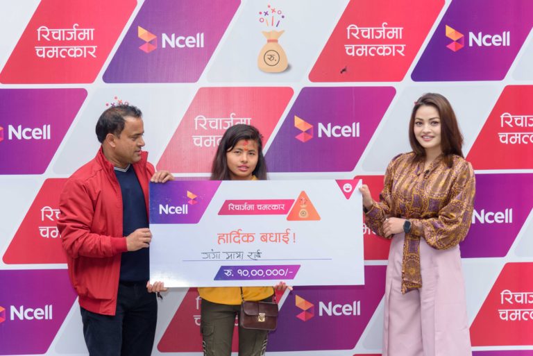 एनसेलद्वारा मासिक र साप्ताहिक विजेताहरुलाई नगद पुरस्कार हस्तान्तरण