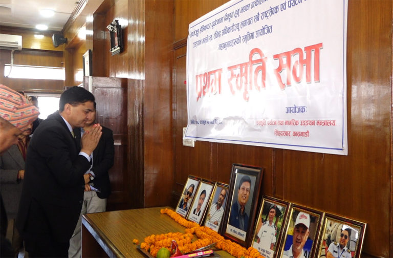 पर्यटनमन्त्री भट्टराईले दिवङ्गत भएकाको आत्माको चिरशान्तिको कामना गर्र्दै परिवारजनप्रति हार्दिक समवेदना प्रकट गर्नुभयो । “आज एक वर्षअघिको त्यो क्षण सम्झँदा हामी निकै भावुक छौँ, मन्त्रालयको जिम्मेवारी निर्वाह गरेको होनहार व्यक्ति र पर्यटन क्षेत्रका अगुवा एवं प्रशासक गुमाएको अविस्मरणीय दिन उहाँहरुको सम्झनामा श्रद्धासुमनका केही शब्द अर्पणका लागि हामी भेला भएका छौँ, उहाँहरुले देखाएको बाटो र सद्कार्यको अधुरो यात्रालाई पूरा गर्नेतर्फ प्रतिबद्ध भएर लाग्नसके मात्रै सच्चा श्रद्धाञ्जलि हुनेछ”, पर्यटनमन्त्री भट्टराईले भन्नुभयो ।
