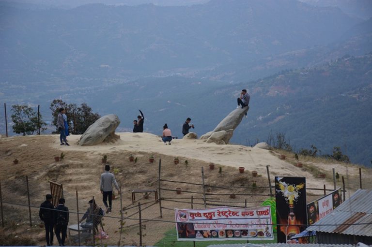 काठमाडौं, फागुन १६ । पर्यटकीयस्थल देवीस्थानडाँडामा रहेको चुच्चेढुङ्गाबाट यहाँका स्थानीयले मासिक करिब रु २४ हजारभन्दा बढी आम्दानी गर्दै आइरहेका छन् । काभ्रेपलाञ्चोकको धुलिखेल नगरपालिका–९ देवीस्थानडाँडा घुम्न आउने पर्यटकबाट उठाउने शुल्कले सो आम्दानी भएको हो । ‘चुच्चेढुङ्गा’ मा चढ्न रु १० शुल्क लाग्ने गर्दछ ।