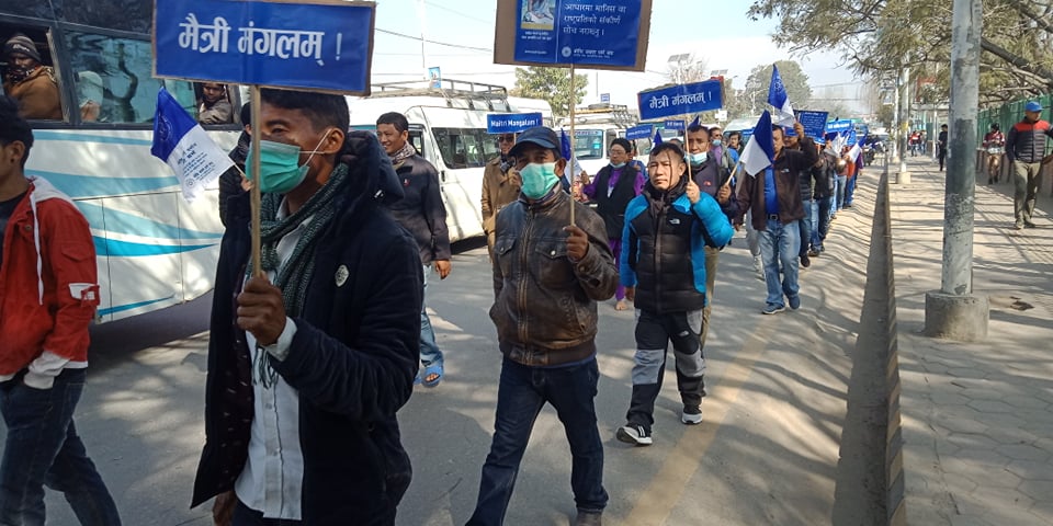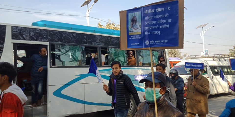 उनीहरु न कुनै नारा गर्दै थिए न कुनै आवाज निकाल्दै थिए । मौन जुलुस निकालेका उनीहरुको हातमा रहेको प्लेकार्डमा विश्व शान्तिका वाक्यहरु थिए । कतिपय प्लेकार्ड र ब्यानरमा बमजनको तस्बिर थियो ।