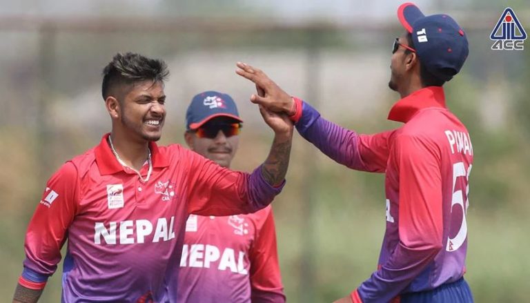 सन्दीपले पहिलो ओभरको दोस्रो बलमा भिरनदिप सिंहलाई आउट गरे । अर्को बलमा उनले खिजार हायतलाई आउट गरे । यससँगै सन्दीपले टी(ट्वान्टीमा १ सय १ विकेट पुरा गरेका छन् । सन्दीपले करियरको सय विकेट पुरा गर्ने क्रममा नेपालबाट १८ खेलमा ३१ विकेट लिएका छन् ।