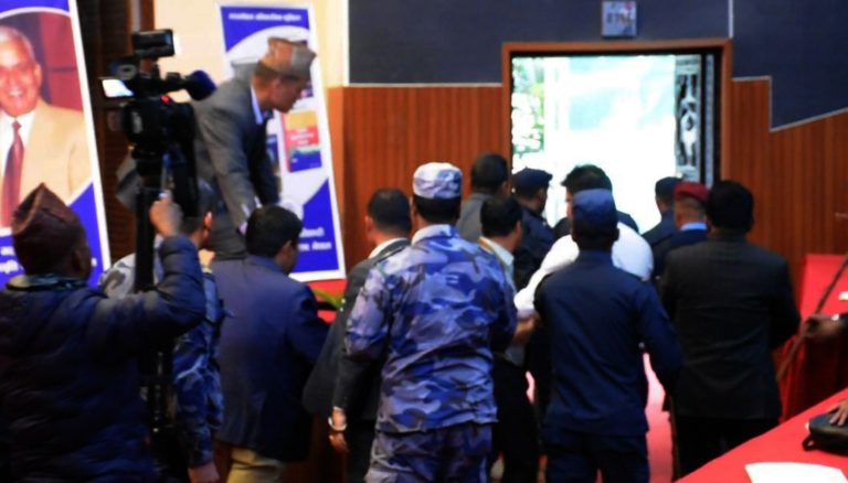 मुकुन्द कालिकोटे, काठमाडौं, १८ फागुन । नेपाल कम्युनिष्ट पार्टीका अध्यक्ष पुष्पकमल दाहाल प्रचण्ड राष्ट्रियसभा गृहमा आइतबार भाषण पूरा गरी मञ्चमा फर्कने तरखर गर्दै थिए । भरतमोहन स्मृति प्रतिष्ठानको कार्यक्रममा उनी पोडियमबाट मञ्चतर्फ बढ्नै लाग्दा अचानक जुत्ता प्रहार भयो । जुत्ता पोडियममा लागेर ड्याङ्ग आवाज आयो ।