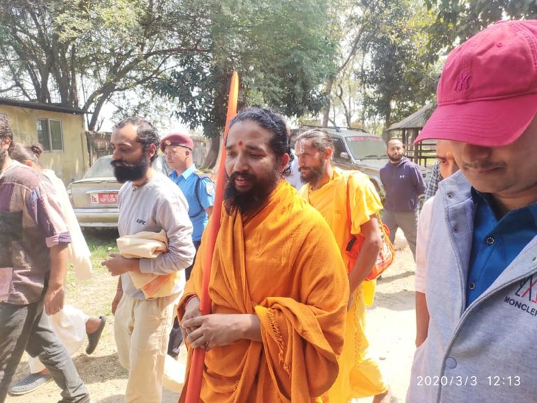 सुनसरी, २० फागुन । गेरु वस्त्रमा सिद्धबाबा भनिने कृष्णबहादुर गिरी अदालत पुगेका थिए । उनको हातमा सीताराम लेखेको झण्डा थियो । उनले अदालती प्रक्रिया पूरा गरे ।