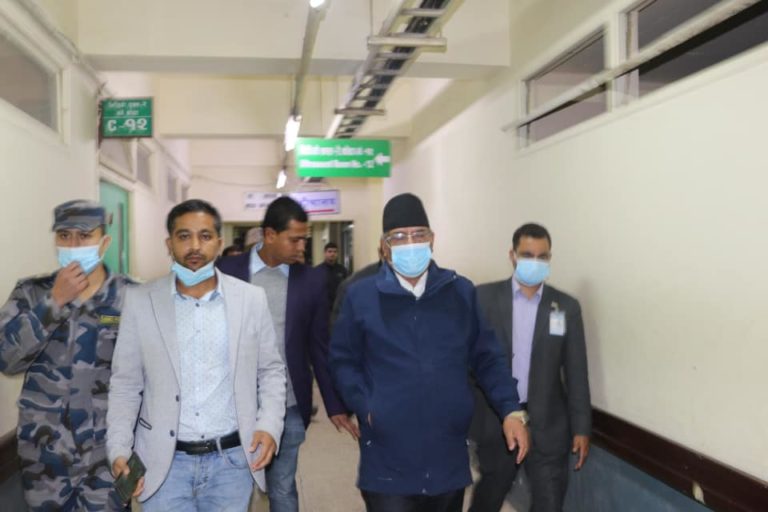 काठमाडौं, २० फागुन । नेपाल कम्युनिष्ट पार्टी (नेकपा) का अध्यक्ष पुष्पकमल दाहाल ‘प्रचण्ड’ले प्रधानमन्त्री केपी शर्मा ओलीको स्वास्थ्य स्थितिबारे जानकारी लिएका छन् । आज साँझ महाराजगन्जस्थित त्रिवि शिक्षण अस्पताल पुगेर अध्यक्ष दाहालले प्रधानमन्त्रीको स्वास्थ्यवस्थाबारे जानकारी लिएका हुन्। प्रधानमन्त्री ओली मिर्गौला प्रत्यारोपणका लागि शिक्षण अस्पतालमा भर्ना भएका हुन् ।