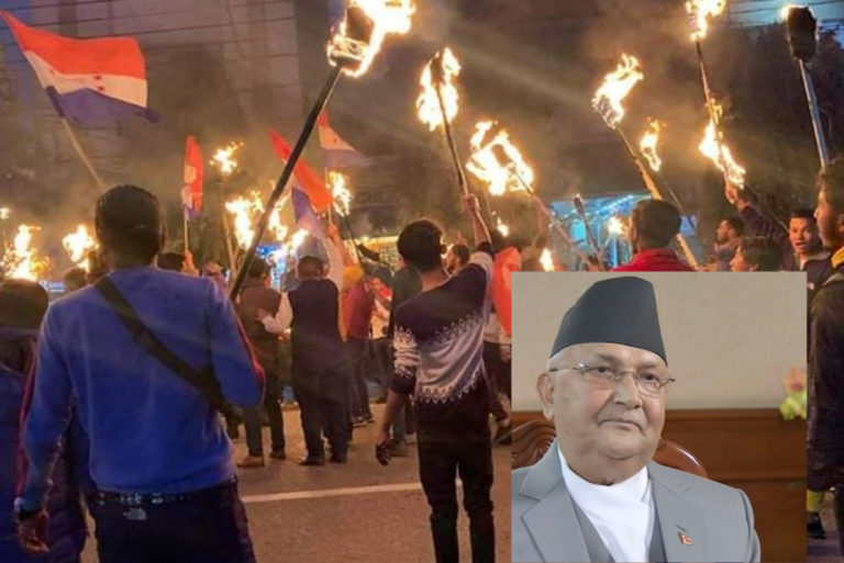 नेविसंघ र तरुण दलले मानवियता विर्सेर ओलीविरुद्द नारावाजी
