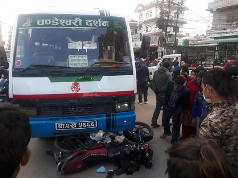 ललितपुर, २५ फागुन । यात्रुवाहक बसले मोटरसाइकललाई ठक्कर दिंदा एकजना गम्भीर घाइते भएका छन् । आज साँझ इमाडोल कृष्ण मन्दिर चोकमा विपरित दिशामा आएको मोटरसाइकललाई बा २ ख ५६६६ नम्बरको बसले ठक्कर दिएको हो ।