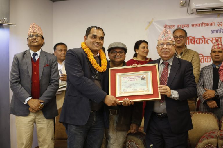 आज साँझ आफ्नो फेशबुकमा सम्मानित भएको कुरा जानकारी गराउँदै उनले लेखेका छन्,”पत्रकारितामार्फत विकास र सुशासन कायम गर्न उल्लेख्य भुमिका खेलेको भन्दै रौतहट टाइम्सको वार्षिकोत्सवको अवसरमा सम्मानित हुन पाउँदा थप जिम्मेवारीबोध महसुस भएको छ । यो अवसरका लागि श्रद्धेय गोविन्द चौलागाईप्रति हार्दिक आभार व्यक्त गर्दछु। मसँगै सम्मानित हुनुहुने विद्युत प्राधिकरणका कार्यकारी निर्देशक कुलमान घिसिङ र सडक विभागका महानिर्देशक केशव कुमार शर्मा प्रति वधाई ज्ञापन गर्दछु ।”
