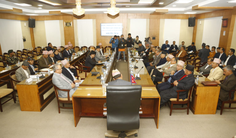 काठमाडौं, २८ फागुन । कोरोना भाईरस (कोभिड–१९) बारे छलफल गर्न सरकारले डाकेको सर्वदलीय बैठक सम्पन्न भएको छ । उपप्रधान तथा रक्षामन्त्री ईश्वर पोखरेलको अध्यक्षतामा बसेको उक्त बैठकमा कोरोनाबारे सही सुचना प्रवाह नभएकोबारे गुनासो भएको थियो ।