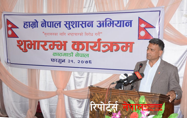 काठमाडौं, २९ फागुन । नेपाल प्रहरीका पूर्व डीआईजी रमेश खरेलको नेतृत्वमा आजबाट ‘हाम्रो नेपाल सुशासन अभियान’ को सुरुवात भएको छ । उक्त अभियानले भ्रष्टाचार, विकृति र विसंगतिको भण्डाफोर गर्ने उद्देश्य लिएको छ ।