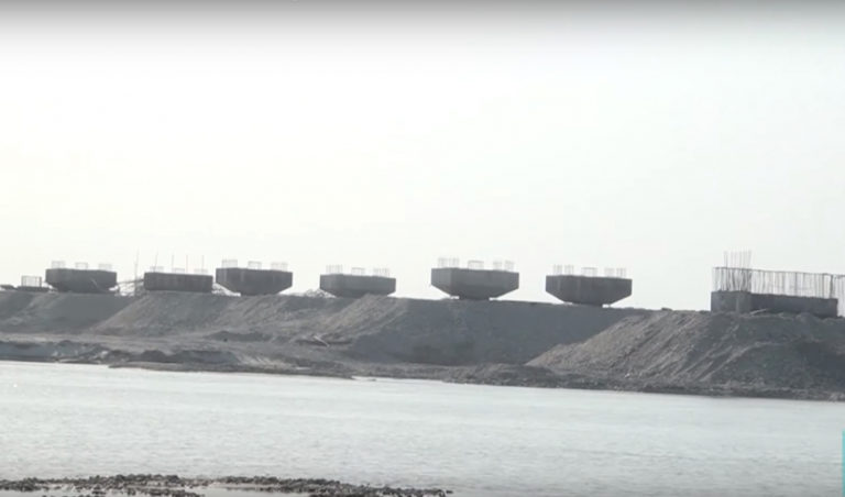 “पारी र वारी गरी दुवैतर्फ दुई हजार ६००÷दुई हजार १०० लम्बाइ भएको बाँध निर्माण गर्नुपर्ने ठेक्कामा उल्लेख छ।” पुल निर्माण गरिरहेको कुमार श्रेष्ठ निर्माण कम्पनी तथा चाइना फ्युल कन्सर्टक्सन कम्पनी ९सिएफासी० को जोइन्ट भेञ्चरका इञ्जिनीयर किशोरराज पाण्डेयले भने “माटोका लागि भरिएसनका लागि प्रक्रिया थालेको महिनौँ बितिसक्दा पनि त्यो पूरा नहुँदा बाँधको काम शुरुआत नै गर्न सकिएको छैन।” पुलको दुवैतर्फ १÷२ वर्गकिलोमिटर क्षेत्रफलका दुई वटा पोखरीसमेत निर्माण गर्नुपर्ने सम्झौतामा उल्लेख छ।