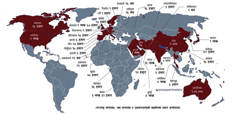 परराष्ट्र मन्त्रालय, श्रम मन्त्रालय र गैरआवासीय नेपाली संघ ९एनआरएनए०को तथ्यांकअनुसार भारतमा १५ लाख र तेस्रो मुलुकमा ३५ लाख नेपाली छन् । परदेसिएका नेपाली उच्च शिक्षा र रोजगारीमा सक्रिय मात्र छैनन्, वर्षमा नौ खर्ब रेमिट्यान्स पठाएर जन्मभूमिको अर्थतन्त्र धानेका छन् । गत आर्थिक वर्ष उनीहरूले आठ खर्ब ७९ अर्ब रेमिट्यान्स पठाएका थिए । यो अभूतपूर्व विपत्मा तिनको अवस्था के छ रु देशले सोध्ने वेला भएको छ ।