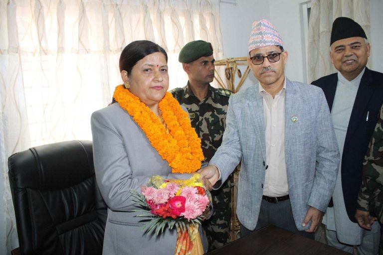 कैलाली, १६ चैत : सुदूरपश्चिम प्रदेशका मुख्यमन्त्री त्रिलोचन भट्ट र प्रदेश प्रमुख शर्मिलाकुमारी पन्तबीच आज भेटवार्ता भएको छ । आज धनगढीस्थित प्रदेश प्रमुखको कार्यालयमा भएको भेटमा मुख्यमन्त्री भट्टले प्रदेश सरकारले कोभिड–१९ को नियन्त्रण तथा उपचारका लागि प्रदेश सरकारले गरेको निर्णय र तयारीका बारेमा प्रदेश प्रमुख पन्तलाई जानकारी गराउनुभएको मुख्यमन्त्री भट्टका प्रमुख स्वकीय–सचिव शिवसिंह वलीले जानकारी दिए ।
