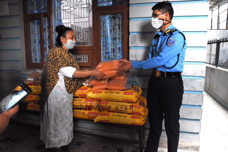 काठमाडौं, १९ चैत्र । कोभिड–१९ जोखिम रोकथाम तथा नियन्त्रणका लागि सरकारले अङ्गिकार गरेको लकडाउन नीतिबाट दैनिक गुजारा चलाउन अप्ठेरो परेका व्यक्तिलाई प्रहरीले खाद्यान्न वितरण गरेको छ । महानगरीय प्रहरी कार्यालयले त्यस्ता असहाय, अपाङ्गता, फरक क्षमता भएका तथा दैनिक ज्यालादारीबाट गुजारा चलाउने व्यक्तिमा परेको समस्यामा सुल्झाउन काठमाडांँैका विभिन्न क्षेत्रमा खाद्यान्न वितरण गरेको हो ।