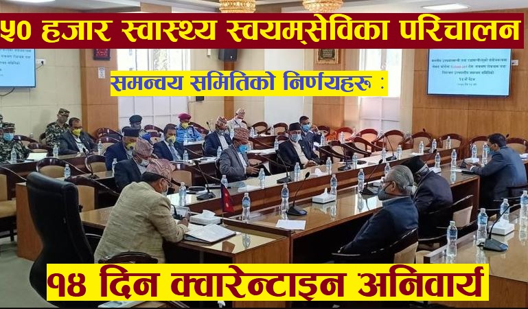 त्यस्तै बैठकले १४ दिन क्वारेन्टाइनमा बसेकाहरुको स्वास्थ्य परीक्षण गरेपछि मात्रै घर जान दिने निर्णय पनि समितिले गरेको छ ।