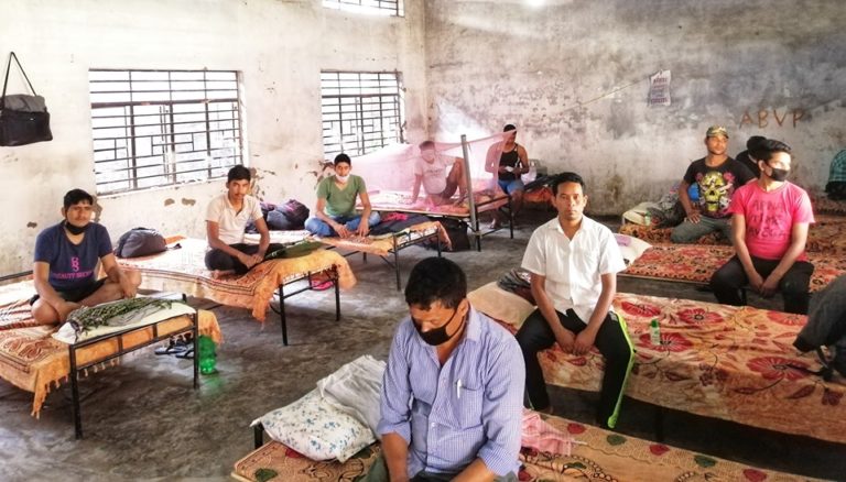 रक्सोल, चैत २७ । कोरोना भाइरसको संक्रमण रोक्न नेपाल सरकारले लागु गरेको लकडाउनका कारण सीमापारि भारतीय सहर रक्सोलमा रोकिएका नेपाली क्वारेन्टाइनमा बसेर समय बिताइरहेका छन्। तीमध्ये एक महिला र चार महिनाकी बालिका पनि छन्।
