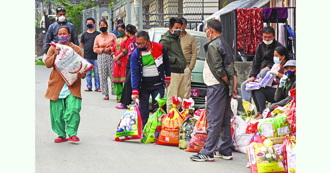 काठमाडौँँ, २८ चैत । उपत्यकामा कोराना भाइरस (कोभिड–१९)को सङ्क्रमणपछि गरिएको लकडाउनबाट प्रभावित असङ्गठित क्षेत्रमा कार्यरत श्रमिक, मजदुर र असहाय गरी एक लाख ६१ हजार ७६५ घर परिवारले राहत सामग्री लिएका छन् । स्थानीय सरकारबाट राहत उपलब्ध गराउने सरकारी योजना अनुसार ती व्यक्तिलाई राहत प्याकेज दिइएको हो ।