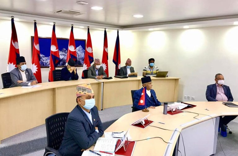 काठमाडौं, २९ चैत्र । प्रधानमन्त्री केपी शर्मा ओलीले सात वटै प्रदेशका मुख्यमन्त्रीहरुसँग आज भिडियो कन्फ्रेन्स गरेका छन् । कोरोना रोकथाम तथा नियन्त्रणमा सरकारले चालेका कदमको कार्यान्वयनको बारेमा समिक्षा गर्न प्रधानमन्त्री ओलीले मुख्यमन्त्रीहरुसँग आज कुराकानी गरेको बुझिएको छ । सरकारले कोरोना रोकथामको लागि आगामी २०७७ साल बैशाख ३ गतेसम्म लकडाउन लगाएको छ ।