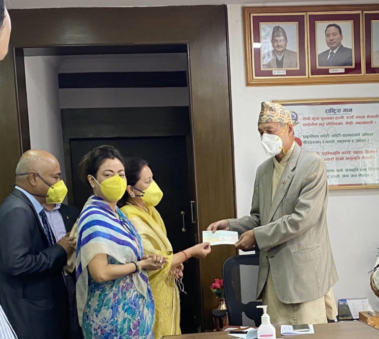काठमाडौं, ३० चैत्र । नेशनल लाईफ इन्स्योरेन्स कं. लि. ले नेपाल सरकारले स्थापना गरेको कोरोना भाइरस संक्रमण रोकथाम, नियन्त्रण तथा उपचार कोषमा रु.५१ लाख (रु. एकाउन्न लाख) प्रदान गरेको छ । आज कम्पनीको संचालक समितिका अध्यक्ष प्रेमा सिंहले अर्थ, सञ्चार तथा सूचना प्रविधि मन्त्री युवराज खतिवडालाई उपरोक्त रकम बराबरको चेक प्रदान गरेका हुन् ।