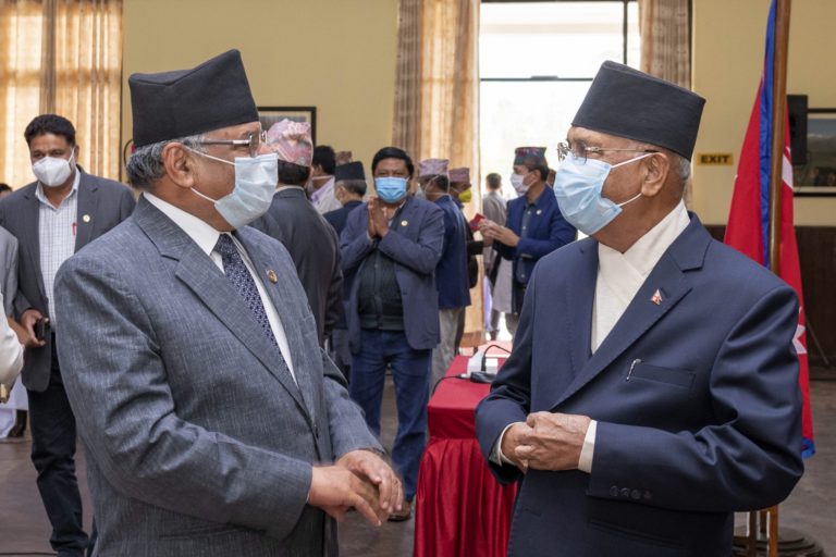 काठमाडौं, १० बैशाख । प्रधानमन्त्री एवं नेपाल कम्युनिष्ट पार्टी (नेकपा) का अध्यक्ष केपी शर्मा ओली र अध्यक्ष पुष्पकमल दाहाल ‘प्रचण्ड’ले आज पार्टी स्थापना दिवसका अवसरमा सङ्घीय संसद्मा प्रतिनिधित्व गर्ने तीन प्रदेशका सांसदसँग आज अध्यादेश र बन्दाबन्दी विषयमा छलफल गरेका छन्।