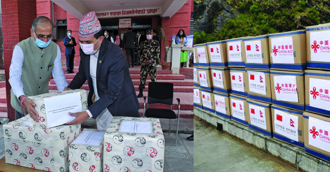 यसैबीच नेपालका लागि चिनियाँ राजदूत होउ यान्छीले पनि ट्विटरमार्फत स्वास्थ्य सामग्री नेपाललाई हस्तान्तरण गरेको जानकारी दिएका छन् । बुधबार ट्विट गर्दै उनले सिज्याङ स्वायत्त क्षेत्रले उपलब्ध गराएको सहयोग तातोपानीस्थित मितेरी पुलमा नेपाली पक्षलाई बुझाइएको जानकारी गराएका छन् । (गोरखापत्रबाट)