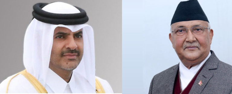 प्रधानमन्त्री ओलीले कतारका समकक्षी खालिद बिन खलीफा बिन अब्दुल अजीज अल थानीसँग बिहिबार टेलिफोन संवाद गरी खुशी व्यक्त गरेका छन् । प्रधानमन्त्री ओलीले कतारका समकक्षी खालिद विनसँग टेलिफोन संवाद भएको सामाजिक सञ्जालमा ट्वीट गरेका छन् । उनले कतारमा रहेका नेपालीको सुरक्षा र कल्याणका बारेमा चासो राखेको बताएका छन् । प्रधानमन्त्री ओलीले ट्वीटमा भनिएको छ, “कतारका प्रधानमन्त्रीले त्यहाँ रहेका नेपालीको बारेमा चिन्ता नलिन आग्रह गरेका छन् । (गोरखापत्रबाट)