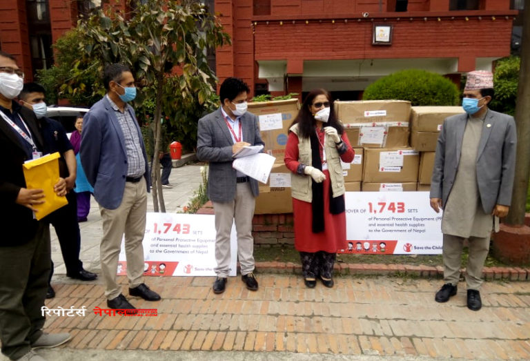 सेभ द चिल्ड्रेनले १ हजार ७ सय ४३ सेट व्यक्तिगत सुरक्षा सामग्री (पीपीई) सहित विभिन्न स्वास्थ्य सामग्री हस्तान्तरण गरेको छ । इन्फ्रारेड थर्मो्मिटर, एन–९५ मास्क, कार्डिआकमोनिटर, इलेक्ट्रिक सक्सन मेसिन, ईसीजी मेसिन लगायतका सामग्री उपलब्ध गराउँदै थप २ हजार पीपीई खरिद प्रक्रियामा रहेको सेभ द चिल्ड्रेनको अन्तरिम राष्ट्रिय निर्देशक बन्दना रिसालले जानकारी दिईन् ।