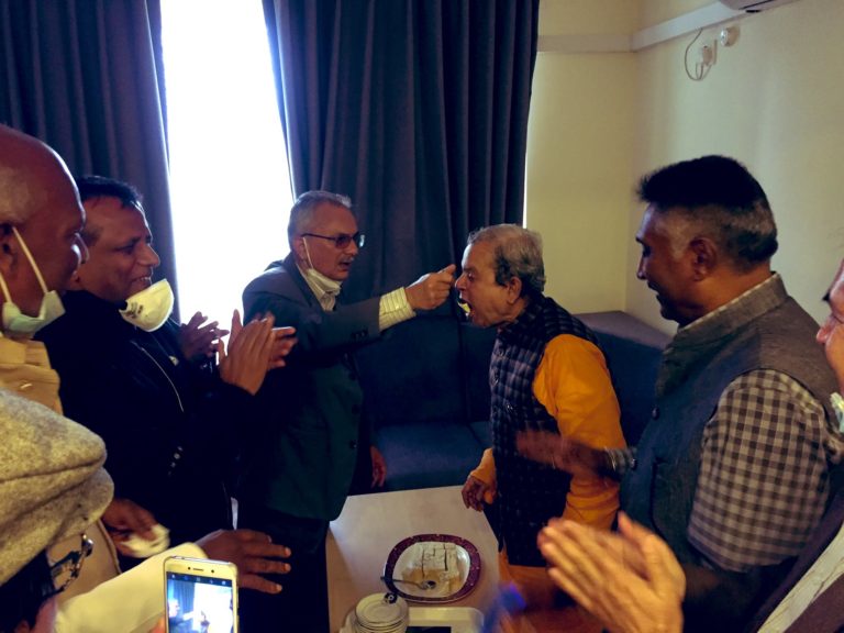 काठमाडौं, २४ बैशाख । जनता समाजवादी पार्टी, नेपालका नेता महन्थ ठाकुरको आज जन्मदिन हो । ठाकुरको ७८औं जन्मदिन आज मनाईएको छ । पार्टीका शीर्ष नेताहरुले ठाकुरलाई केक खुवाएर जन्मोत्सव मनाएका हुन् । उक्त कार्यक्रममा पार्टीका शीर्ष नेताहरु महेन्द्र राय यादव, शरदसिंह भण्डारीलगायतका नेता तथा कार्यकर्ताहरुको उपस्थिति थियो । २ नम्बर प्रदेशका मुख्यमन्त्री लालबाबु राउतपनि जन्मोत्सव कार्यक्रममा सरिक भएका छन् ।