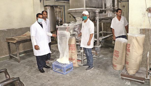 आयोजनाले बन्दाबन्दीको अवधिमा सोचेभन्दा धेरै स्किम्ड मिल्क पाउडर (एसएमपी) उत्पादन गरेको छ । धुलो दूध उत्पादन अधिक गर्नुपरेपछि व्यवस्थापनका लागि बोरादेखि भण्डारणसम्म अभाव खेप्न परेको प्रमुख यादवको दाबी छ । उहाँका अनुसार एसएमपी राख्ने बोरा सकिएपछि आयोजनाले डब्लुएमपी (होल मिल्क पाउडर) र डेरी ह्वाइटनर (चिनी मिसाइएको धुलो दूध)का बोरामा एसएमपीको स्टिकर टाँसेर प्रयोगमा ल्याएको छ । आयोजनाले बन्दाबन्दी अगाडि दैनिक ३० हजार लिटर दूधको एसएमपी बनाउँदै आएको थियो तर बन्दाबन्दीपछि चैत १५ देखि दैनिक ७० हजार लिटरसम्म दूध प्रशोधन गर्नुपर्ने अवस्था आएपछि अहिले धेरै किसिमका समस्या थपिएका हुन् । किसानको दूध खेर जान नदिन र मिल्क होलिडे हुन नदिन आयोजनाले पूर्वका निजी क्षेत्रका डेरीले सङ्कलन गरेको दूधबाट एसएमपी उत्पादन गरिरहेको छ । दुग्ध विकास संस्थानअन्तर्गतका हेटौँडा, बुटवल र जनकपुरको समेत दूध पाउडर बनाउनेदेखि पूर्वको इलाम, पाँचथर, तेह्रथुम, धनकुटा र झापासम्मका किसानलाई राहत मिलेको थियो । (गोरखापत्रबाट)