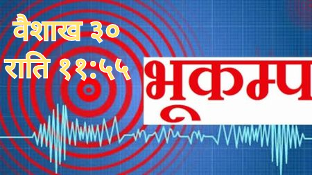 वैशाख ३१, काठमाण्डौ । मंगलबार राति काठमाडौँमा भूकम्पको धक्का महसुस भएको छ । ११ बजेर ५५ मिनेट जाँदा भूकम्पको धक्का महसुस भएको हो ।