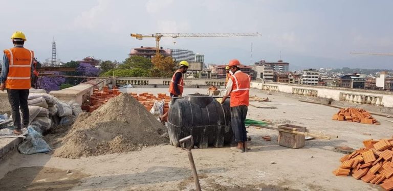 त्यसैगरी, लकडाउनका कारण रोकिएका रानीपोखरी एवं धरहरा पुनर्निर्माणको काम पुनः सुरु भएको छ ।-Photo Source: NRA