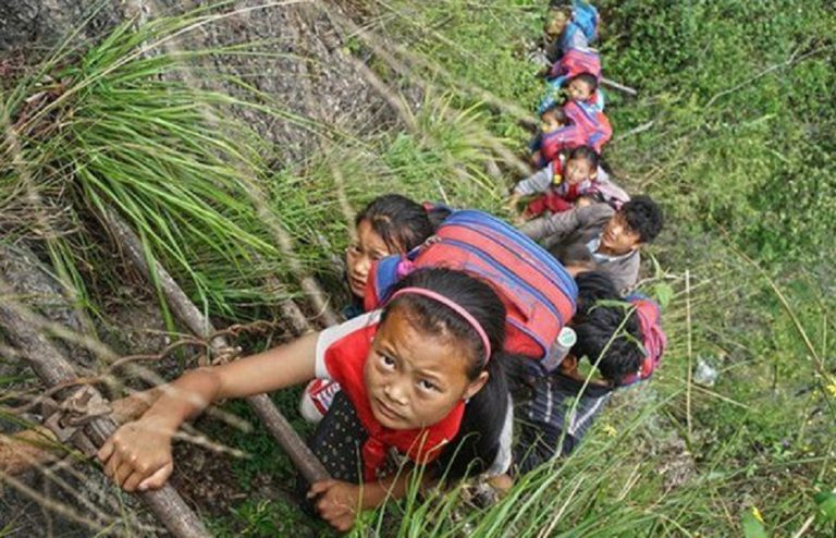 दक्षिण–पश्चिम चीनमा ८ सय मिटर अग्लो पहाड चढेर बच्चाहरु सधै स्कुल जान्छन् । यी बच्चाहरुले सधै खतरनाक र दुर्गम बाटोबाट हिड्न बाध्य छन् । अटुलेर गाउँका बच्चाहरु काधमा झोला राखेर ८ सय मिटर चट्टानमा चढ्नु पर्छ । अब भने उक्त पहाडमा सिढि बन्ने भएको छ तर निकै जोखिम हुनेछ ।
