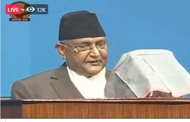 ‘यो सरकार जनादेशबाट आएको हो,’ प्रधानमन्त्री ओलीले संसदमा नीति तथा कार्यक्रममा सांसदहरुले उठाएको प्रश्नको उत्तर दिदै भने, ‘कुनै देशको इच्छाले यो सरकार ढल्ने र ढाल्ने कल्पना नगरे हुन्छ ।’