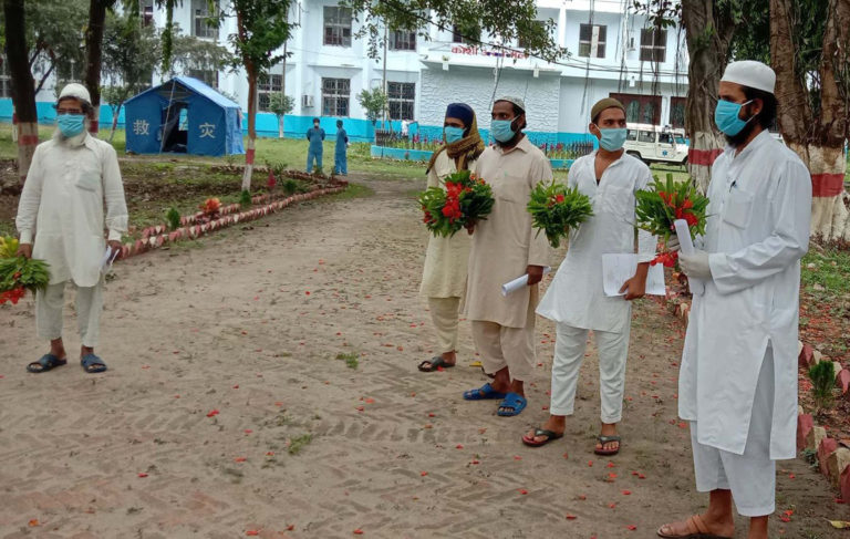 प्रदेश नं १ बाट थप आठ जना कोभिड–१९ बाट सङ्क्रमित निको भै बुधबार घर फर्केका छन्् । कोशी अस्पताल (कोभिड–१९) उपचार केन्द्र विराटनगरमा उपचार गराइ निको भइ घर फर्कनेमा पाँच भारतीय नागरिक र तीन जना उदयपुर जिल्लाको भुल्केका रहेका छन् । तस्वीर : मनोज दाहाल/रासस