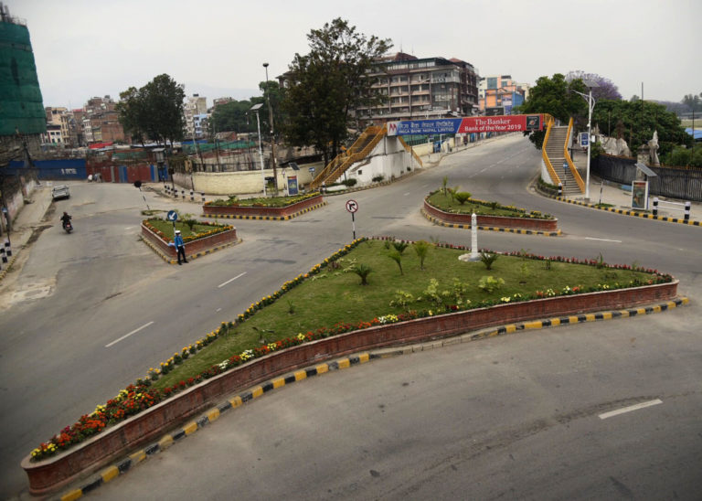 कोरोना भाइरस न्यूनीकरण गर्न सरकारले गरेको लकडाउनमा शहिदगेट आसपासको सुनसान सडक । तस्वीर : चन्द्रकला क्षेत्री/रासस